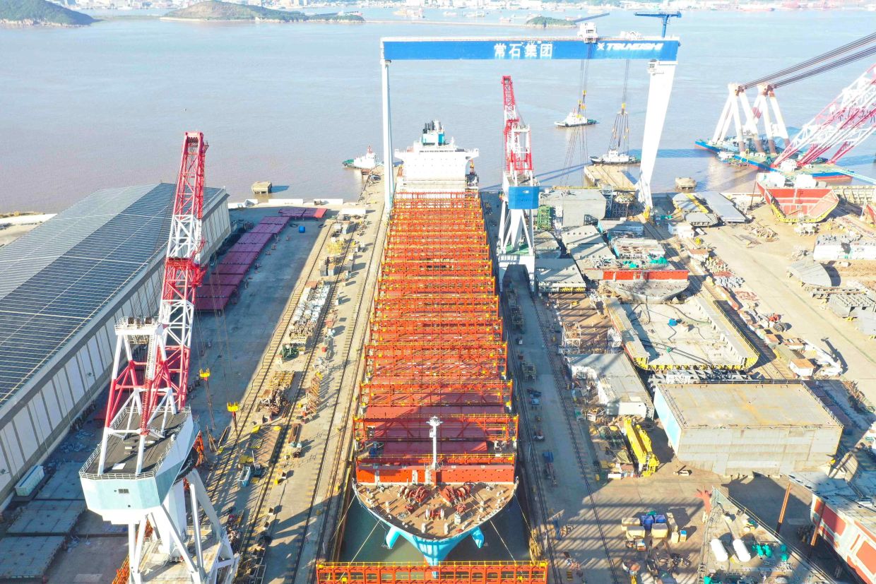 常石造船株式會社(總部:廣島縣福山市,法人代表:董事長兼社長執(zhí)行董事 奧村幸生)在其中國造船基地——常石集團(舟山)造船有限公司(以下簡稱TZS)建造的首艘甲醇雙燃料5,900 TEU集裝箱船,該船已于2025年8月27日下水,預(yù)計2026年2月竣工。